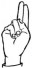 На ћирилици написано МИРЈАНА ЈОВАНЧЕВИЋ састоји се из 17 слова [?]. Исписано ћириличном једноручном азбуком за глувонеме: